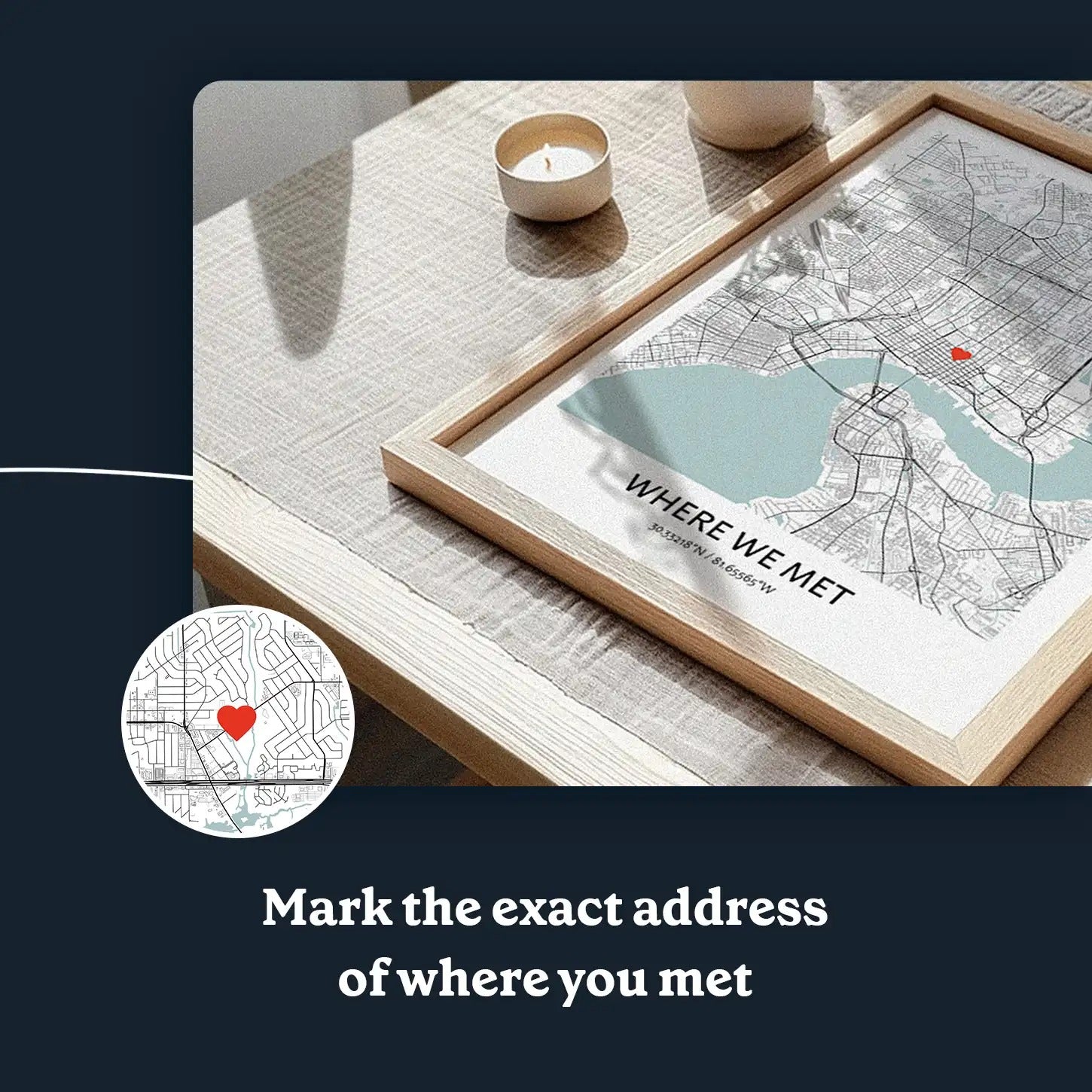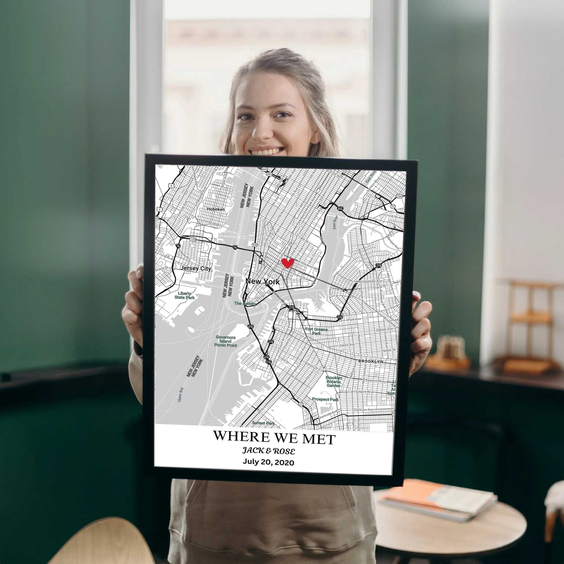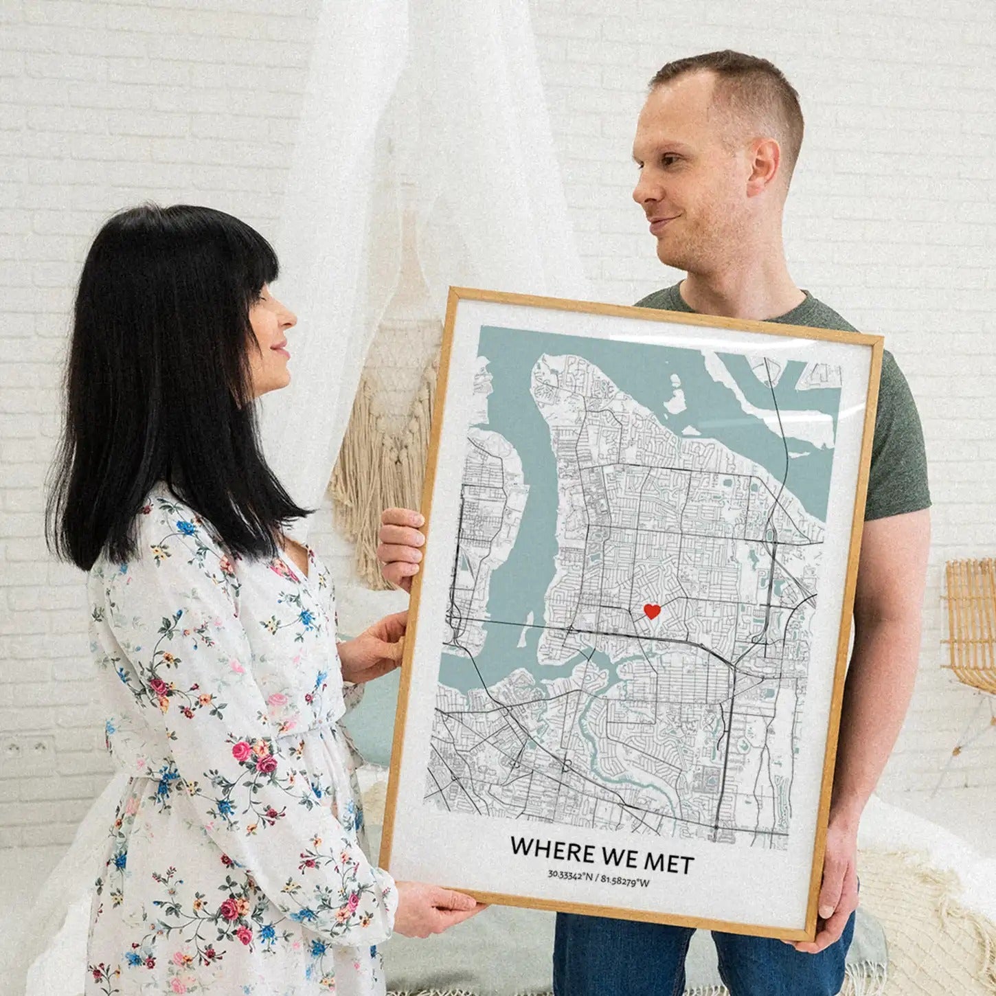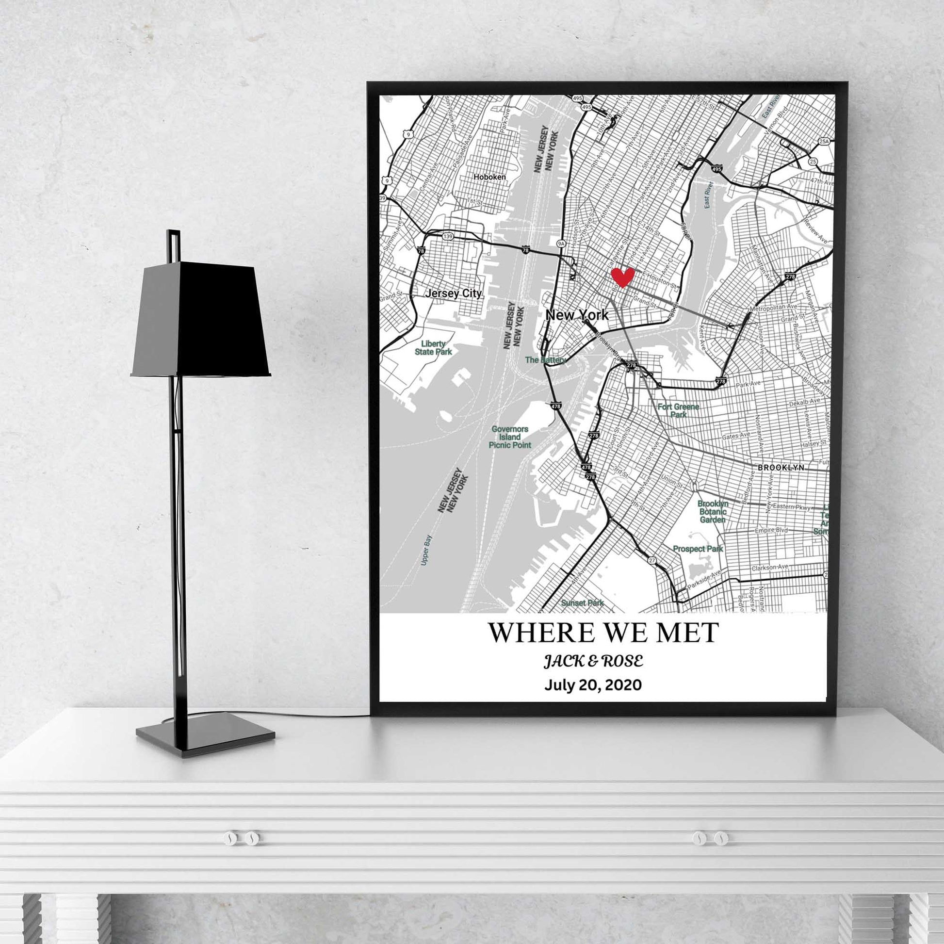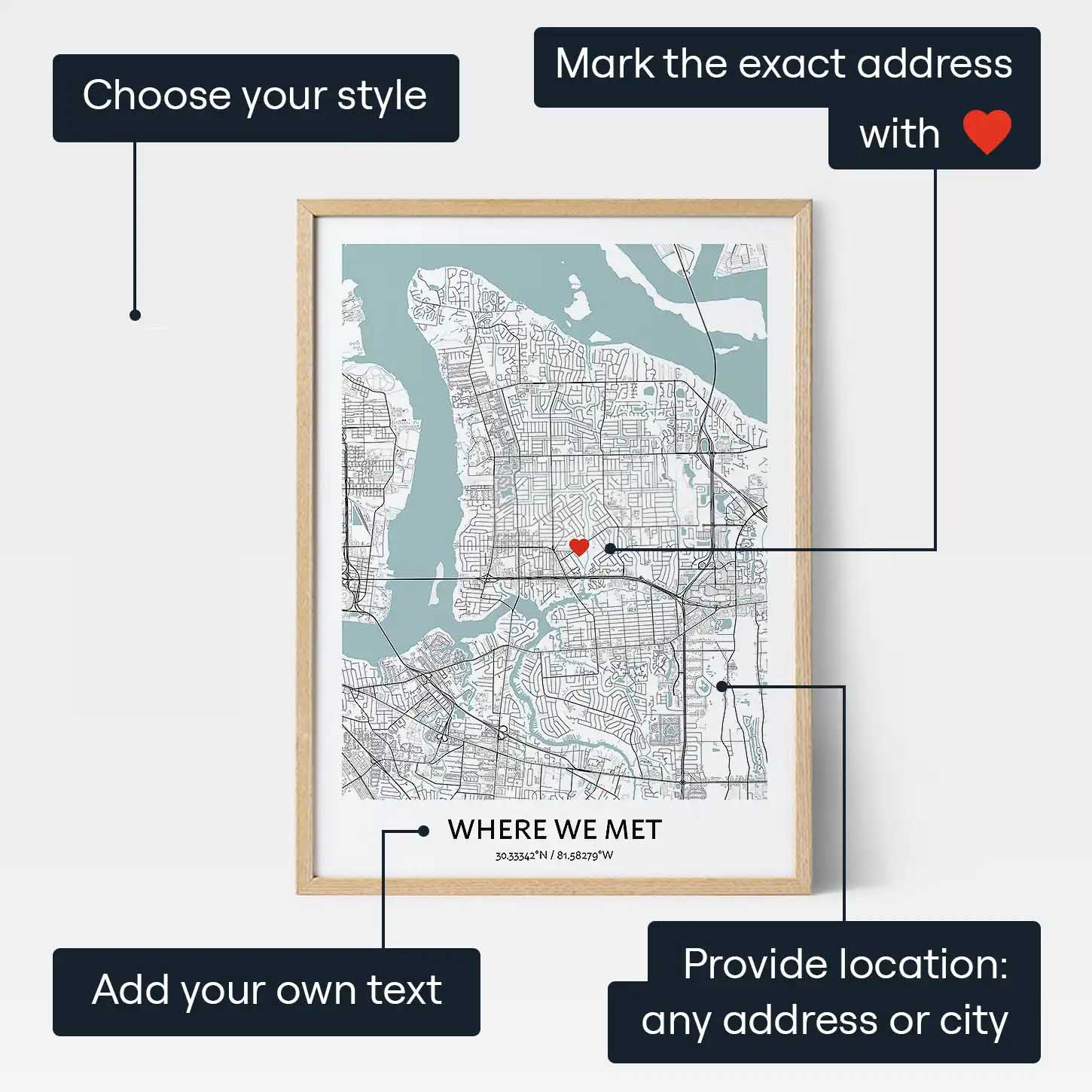 Select one of our print sizes and styles then just add the location, your names and the date to the personalization text box and we will do the rest.